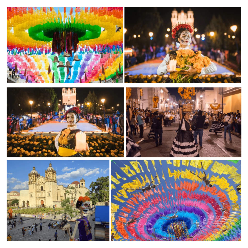 Si hay un lugar que enaltece el Día de los Muertos como ningún otro, es Oaxaca. En la capital, Oaxaca de Juárez, los panteones se iluminan con miles de velas y flores que transforman la noche en un espectáculo visual. El Panteón General es un lugar icónico, mientras que la Plaza de la Danza se cubre de tapetes de arena que representan símbolos tradicionales de la festividad. Las ciudades cercanas de Santa Cruz Xoxocotlán y Santa María del Tule son también ideales para sumergirse en las celebraciones. Además, la gastronomía oaxaqueña brilla durante estos días, con platillos como el nicuatole, el tejate y, por supuesto, el mezcal, deleitando tanto a vivos como a muertos.